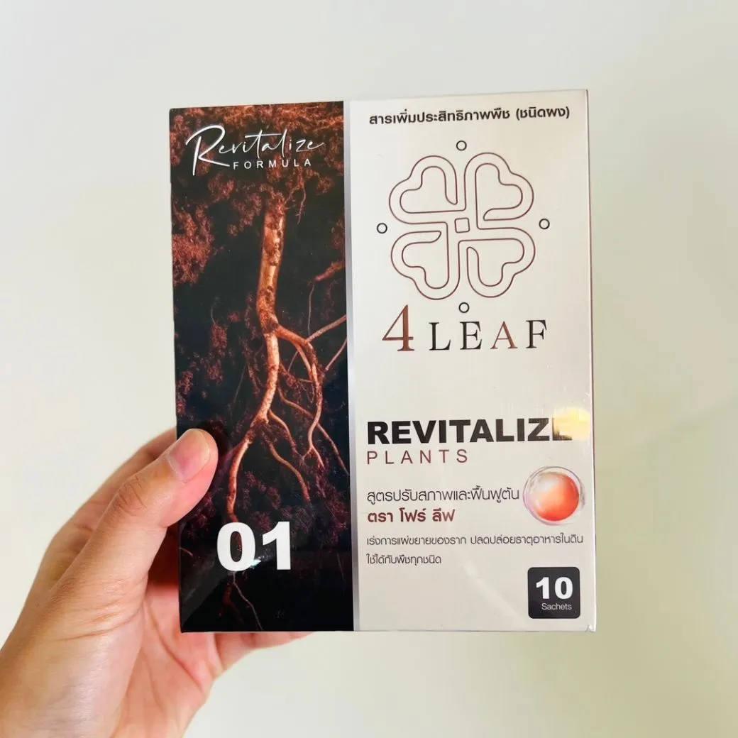 4LEAF Revitalize PLANTS 01 คือผลิตภัณฑ์เสริมอาหารพืชชนิดผง สูตรเข้มข้น ที่ช่วย เร่งราก ฟื้นต้น ฟื้นดิน อย่างเห็นผล เหมาะสำหรับเกษตรกรที่ต้องการ เพิ่มผลผลิต ให้พืชแข็งแรง โตไว เขียวสด และได้ผลผลิตดีอย่างต่อเนื่อง